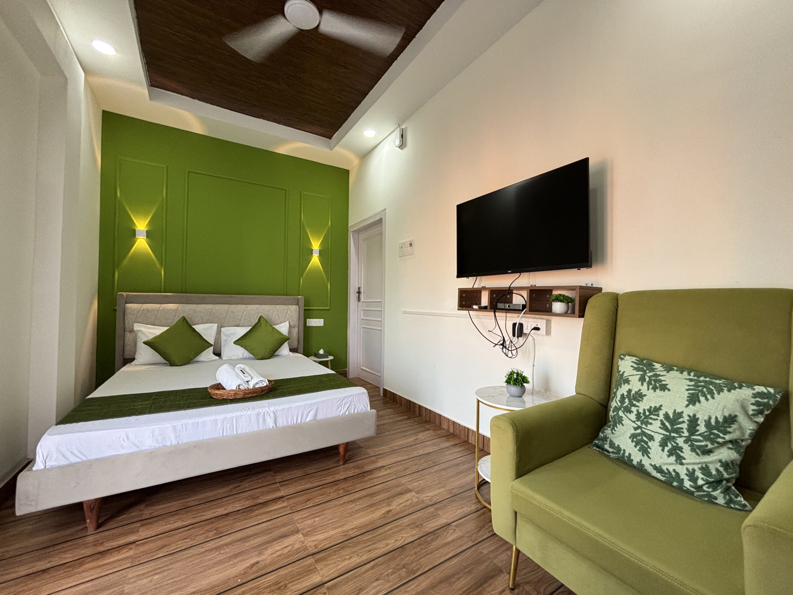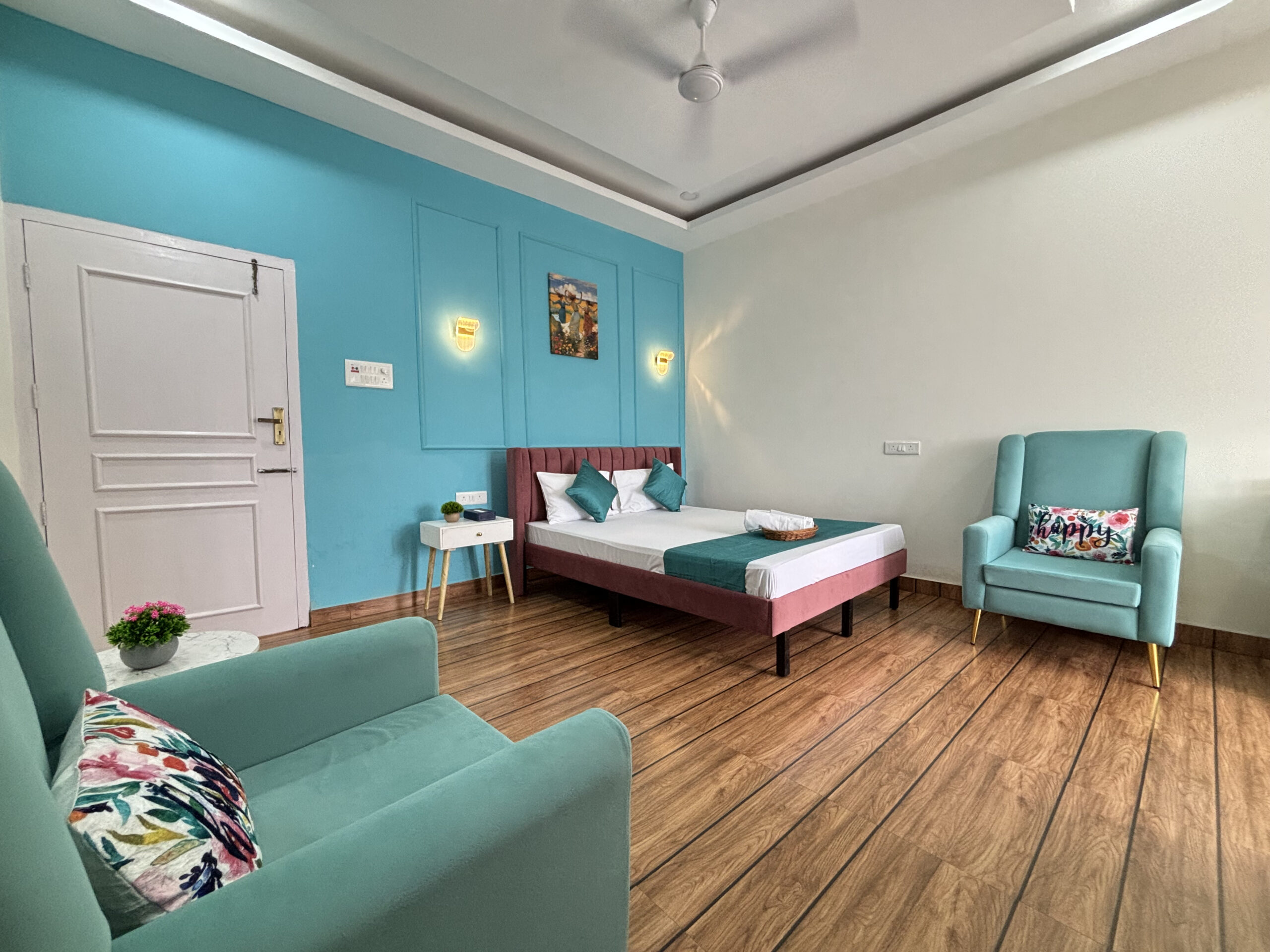 Welcome to a suite designed with subtle intensity. The Spark Suite at Beau Monde Apart Hotel combines the expansive 3BHK comfort guests love with interiors that feel warm, sharp, and quietly powerful. Inspired by figures who carried a spark of change — from Bob Marley to Che Guevara — this suite captures a mood of understated confidence.