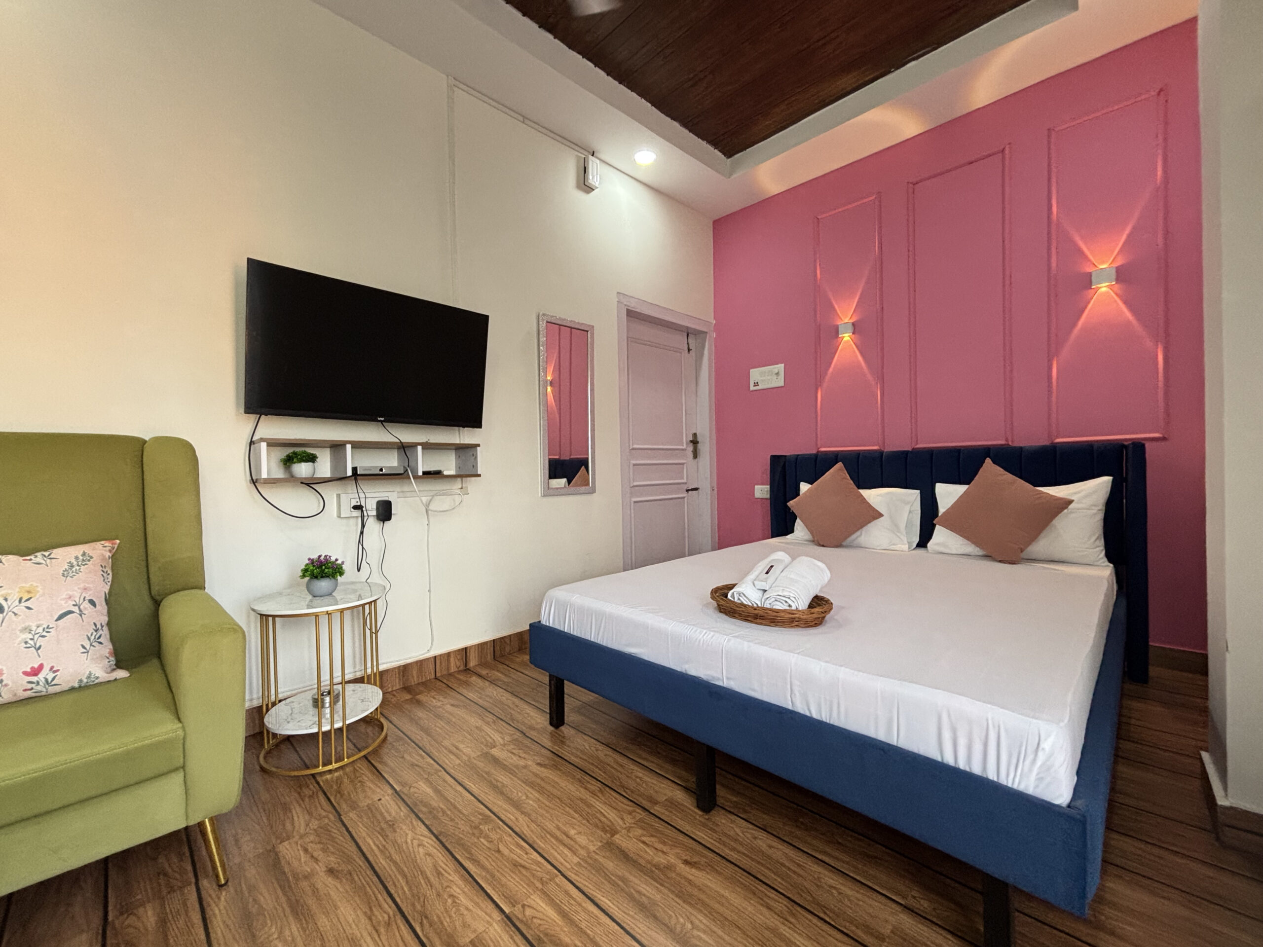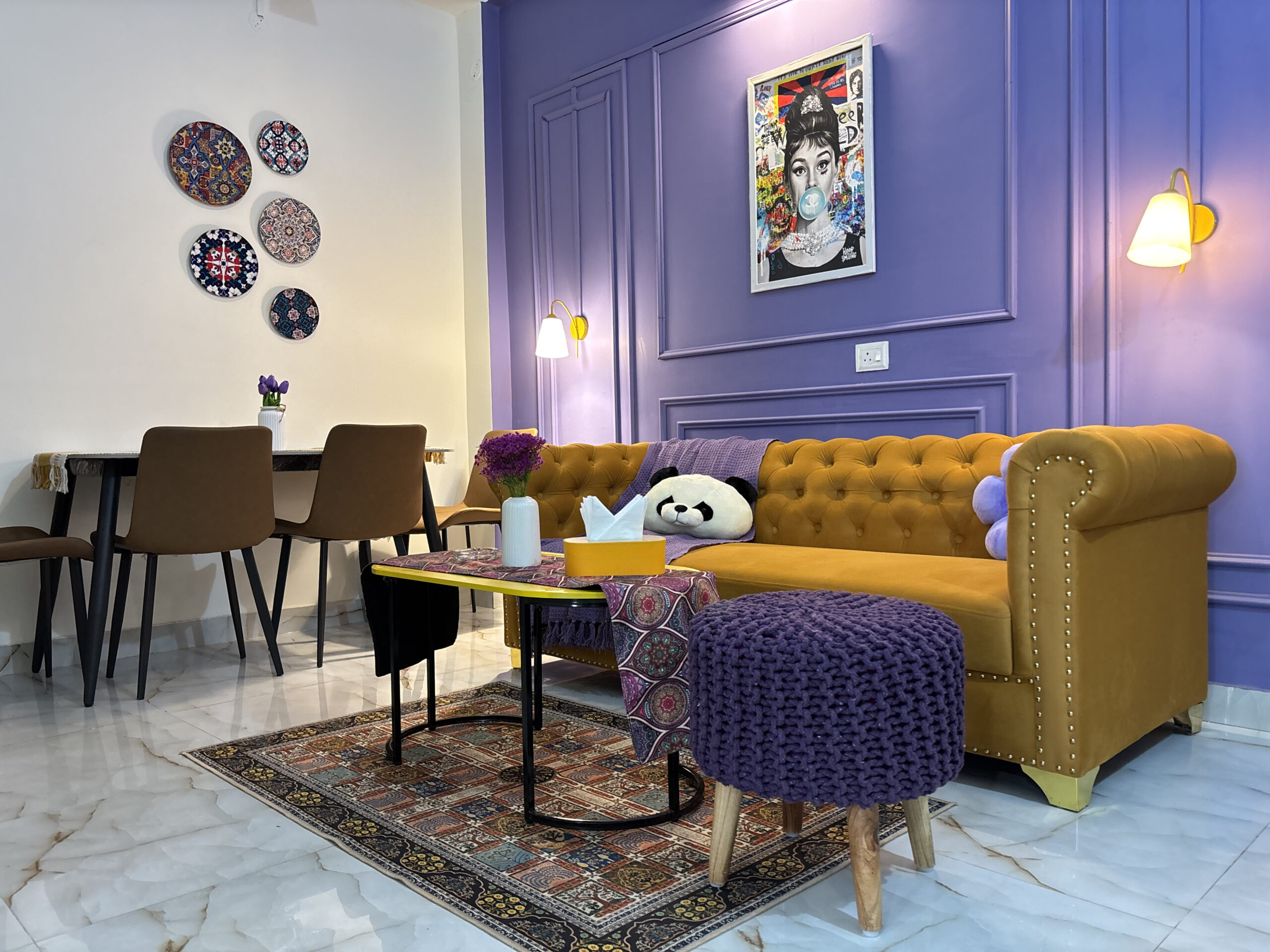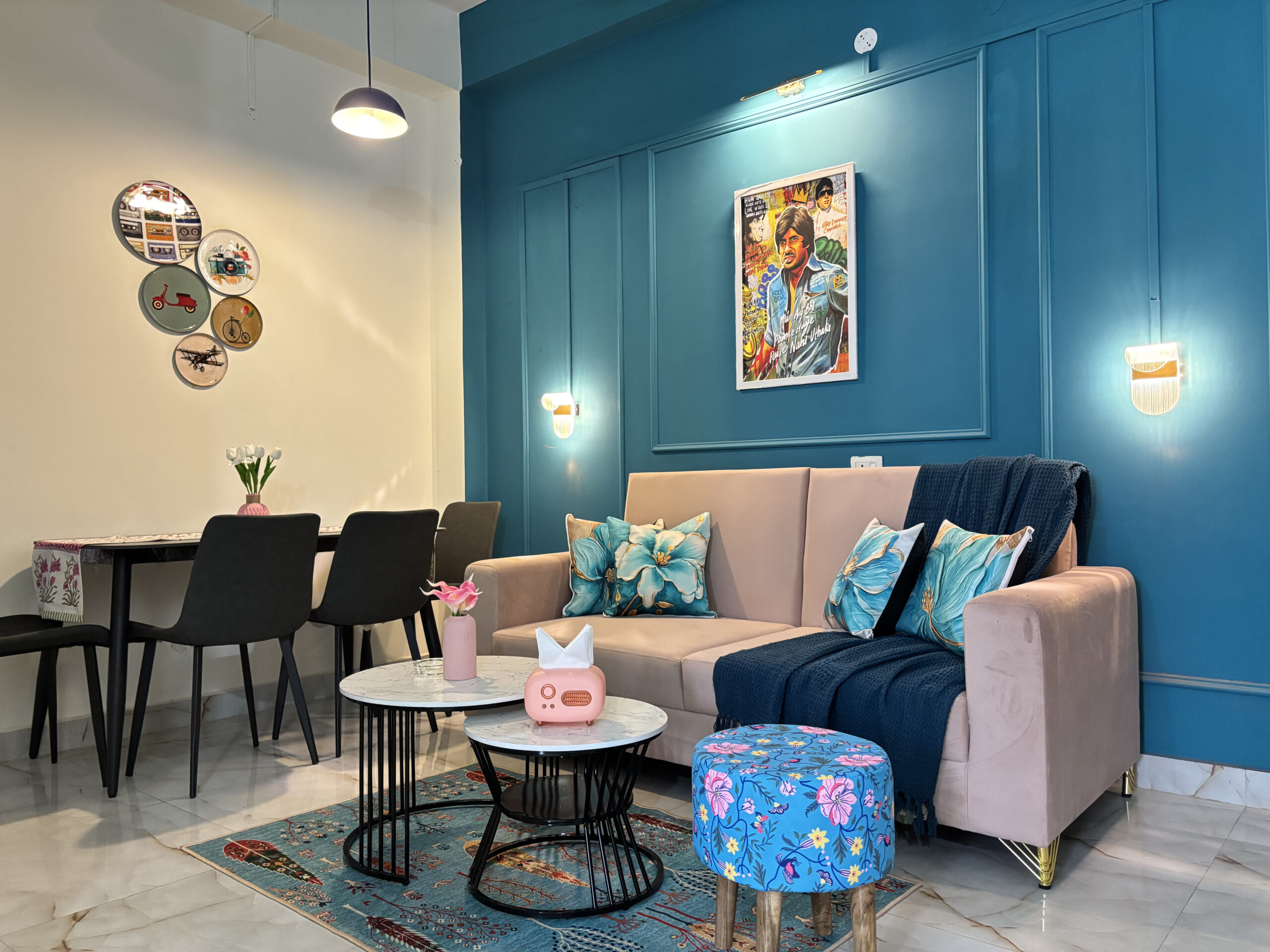 Step into a suite where energy, colour, and modern design redefine premium living. The Vivid Suite at Beau Monde Apart Hotel blends expansive 3BHK comfort with bold visual character inspired by the fearless spirit of global pop icons.